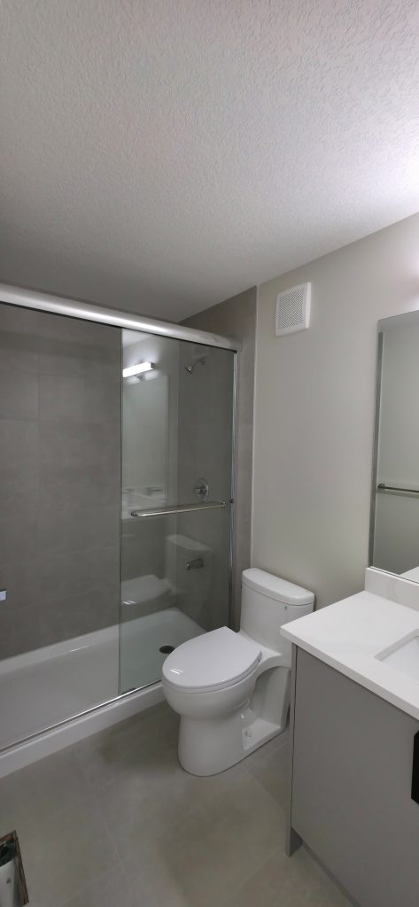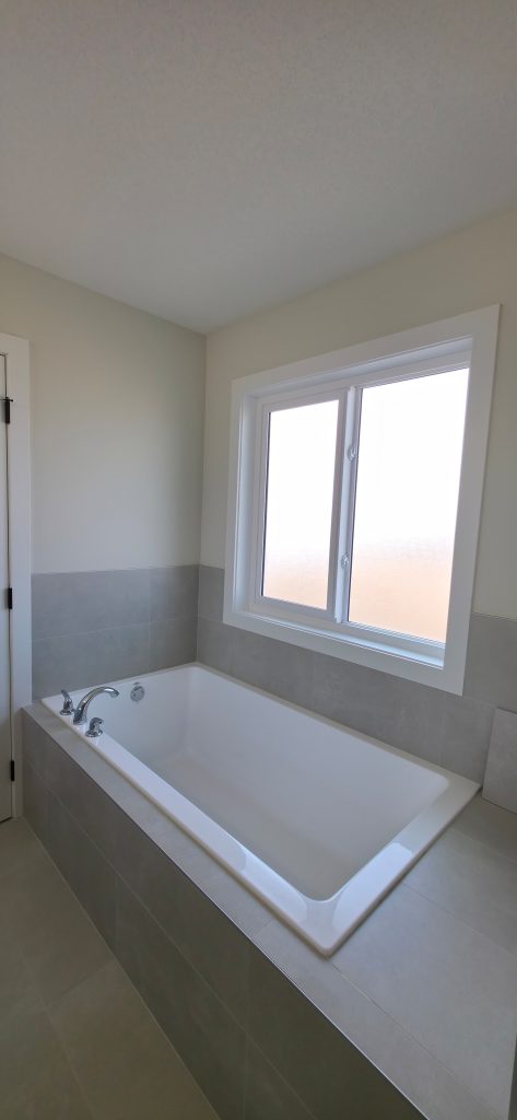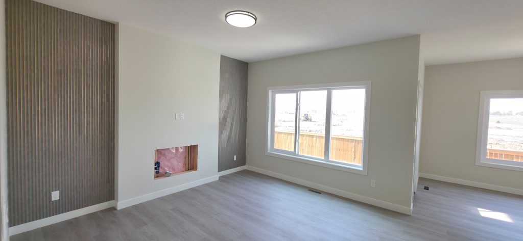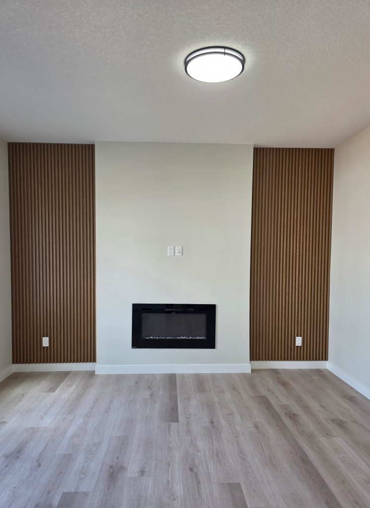 - 50″ electric fireplace c/w full height ceramic tile (as per plan)